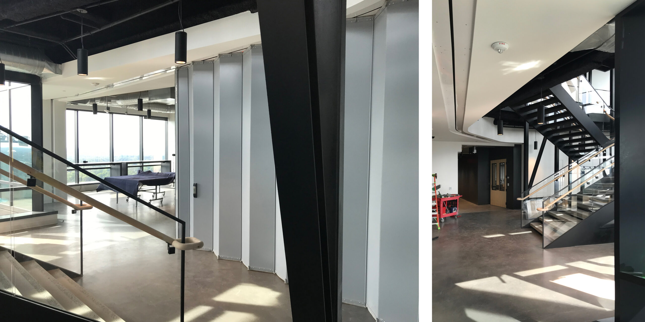 McKEON distributor Maxson & Associates came to the rescue. Deployable fire and smoke rated separations with conforming egress allowed building occupants to exit even when in the closed position. This accomplished the original goal by separating the stair from the horizontal exits and providing a means of egress – while preserving design intent.