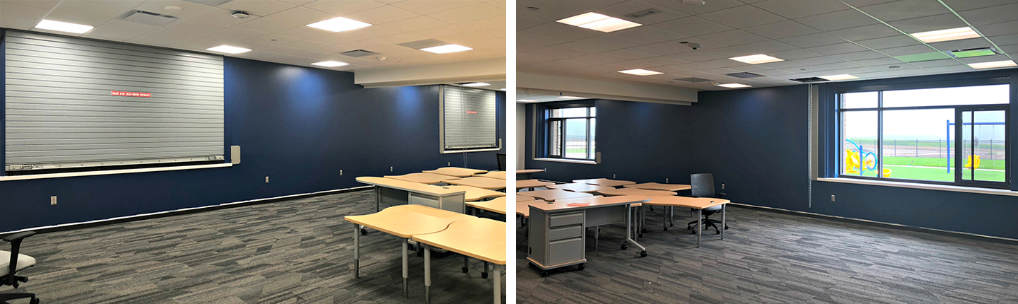 The safe rooms were constructed by protecting large windows in several of the learning studios with SafeSpace™ 500 vertical rolling steel assemblies. These wide-span opening protectives allow abundant natural light into spaces, closing only in case of a tornado emergency.