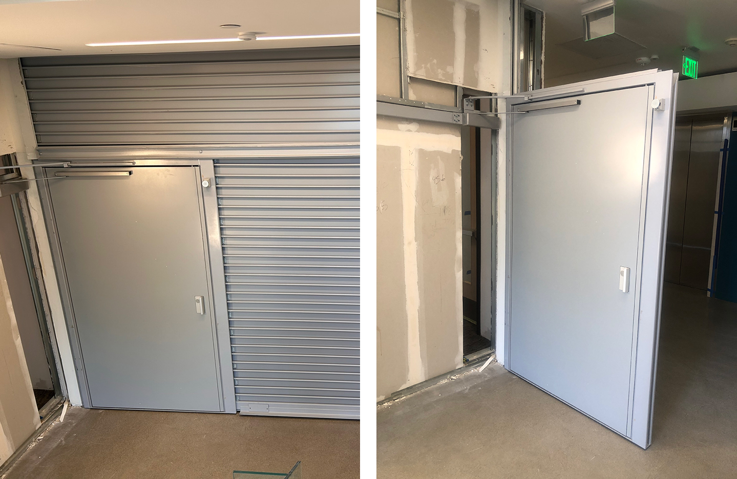 B.T. Mancini was tasked with updating a McKEON Safescape® T2000 Series vertical coiling smoke and fire door because of a change in building occupancy. To meet new egress requirements, the original 3 ft. wide-span opening protective with egress needed to be enlarged to a 4 ft. wide door with egress swing door.
